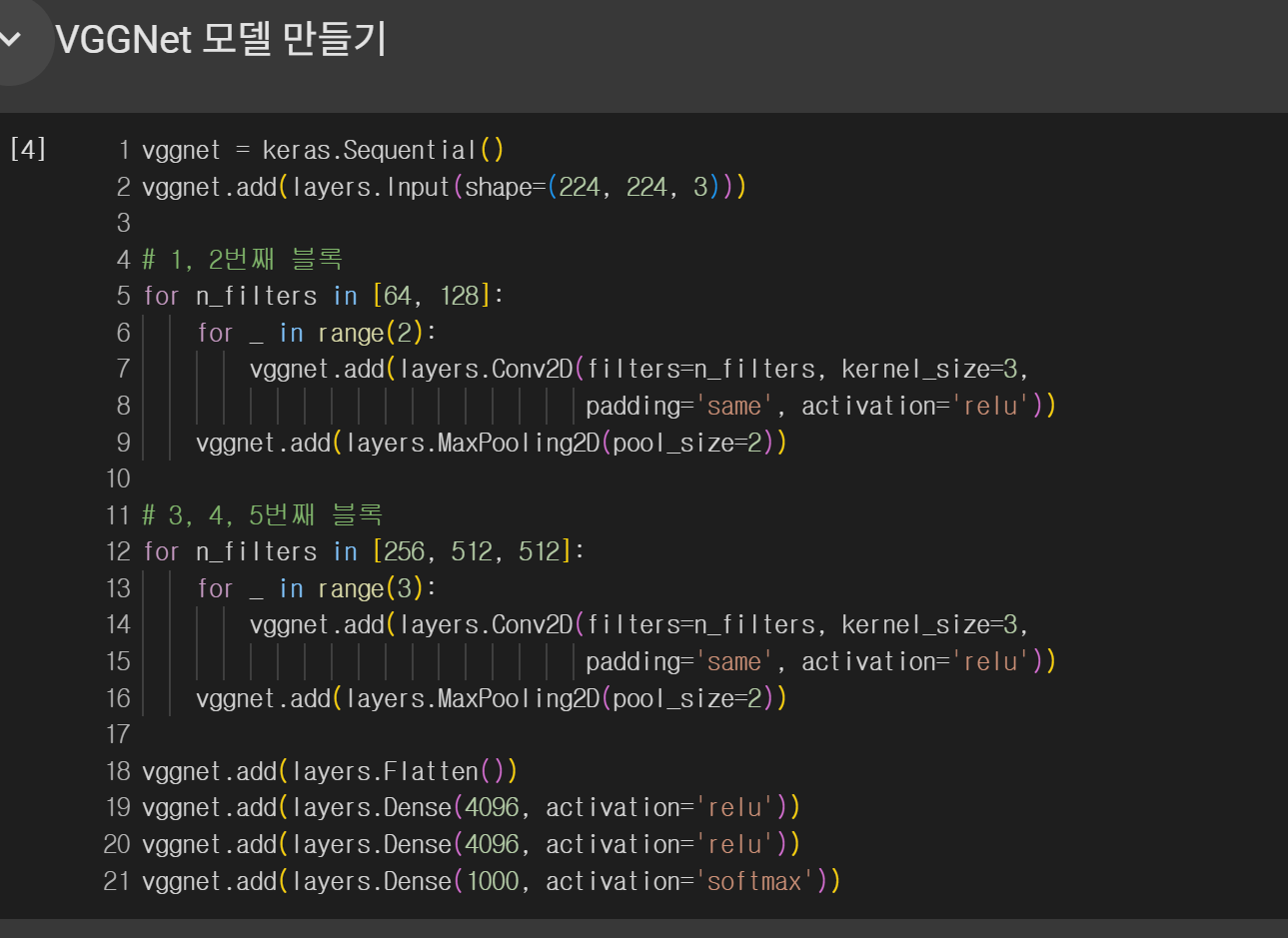 2-1에서는 알렉스넷 모델 구조를 알아봤고 VGGNet모델을 만들었다..